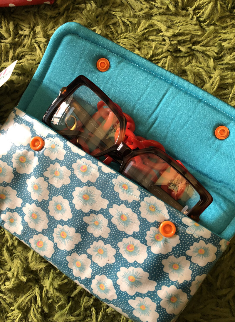 Pochette realizzata con tessuto laminato esterno ed internamente foderato con tessuto neoprene utile ad attutire gli urti ed ideale per preservare gli occhiali, chiusura con due bottoni automatici in plastica colorata